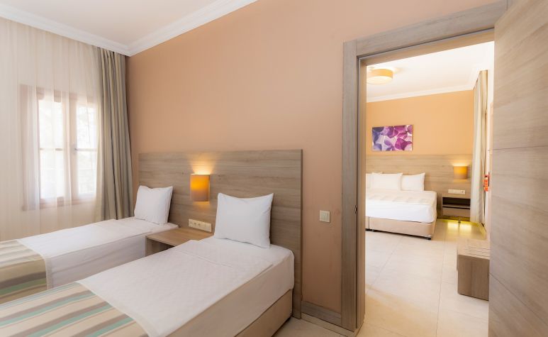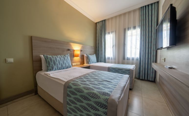 Хотелът разполага с общо 288 стаи, от които 101 разположени в 3-етажна основна сграда Main building и  187 Club Room в къщички. Main Building Standard (стаи в основната сграда – 21 m²), Club Room (стаи в отделни къщички – 20 m²), Family Junior Club Room (две отделни стаи с двуетажно легло – 28 m²), Family club room (две отделни стаи с тераса или балкон – 40 m²), Deluxe family club room (две стаи с тераса или балкон – 40 m²).