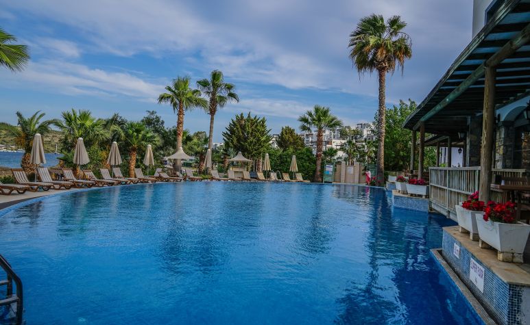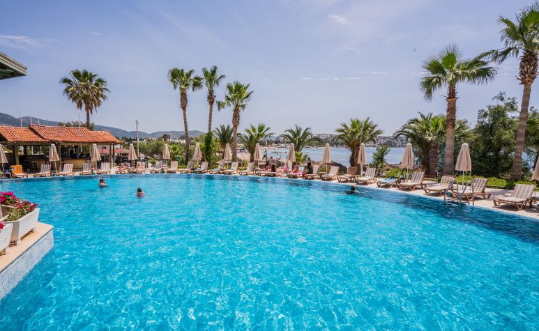 Хотелът се намира на 48 км от летище Милас, на 8 км от центъра на Бодрум, на 3км от Битез, на брега на морето. Разположен в/у площ от 5000 m².