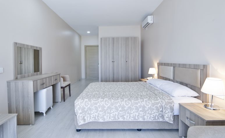 Всички стаи са оборудвани с климатик, телевизор, телефон, баня с душ/вана, сешоар, мини бар (празен), сейф (платен), тераса или френски балкон. Почистване на стаите - всеки ден, смяна на спалното бельо и кърпите - 3 пъти в седмицата.