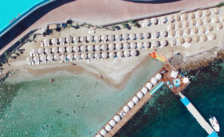 Намира се на 23 км от летище Бодрум, на 10 км от центъра на Бодрум, в района на Торба, на брега на морето. Построен 1996 г., на обща площ от 55 000 м².Основна реновация 2015. Частично реновиран 2022 г.