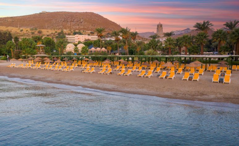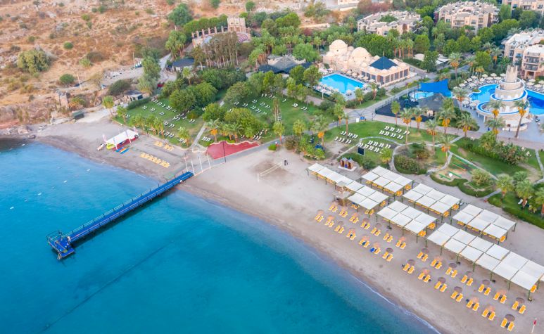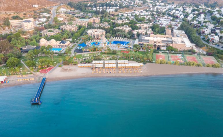 Намира се на 55 км. от летище Милас, на 20 км. от центъра на Бодрум, на 19 км от центъра на Тургутрейс, на 12 км от Shopping Mall, в района на залива Бала, на брега на морето. Построен 1998 г., на обща територия от 50.000 м². Реновиран през 2025г.