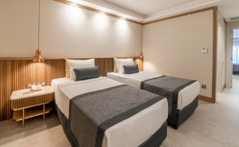 Хотелът разполага общо с 362 стаи, разположени в една основна сграда, от тях 132 Standard room (30 m²), 85 Deluxe room (37 m²), 137 Family room (41 m²). Всички стаи са оборудвани с климатик, телевизор, телефон, баня с душ, сешоар, сет за кафе и чай, мини бар (безплатен), сейф (безплатен), балкон, WI-FI на цялата територия на хотела. Почистване на стаите и смяна на кърпите - всеки ден, смяна на спално бельо - 3 пъти седмично.