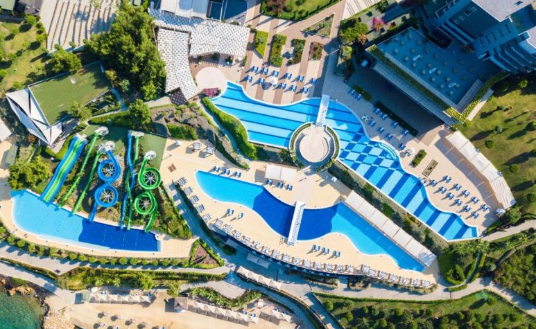 Намира се на 15 км. от летище Бодрум, на 26 км. от центъра на Бодрум, на 3 км от центъра на Гюверджинлик, на брега на морето. Построен през 2012 г., на обща площ от 82 000 М². Реновиран през 2023/2024 г. - ресторантите, общите части и подобрена Ultra All Inclusive концепция.