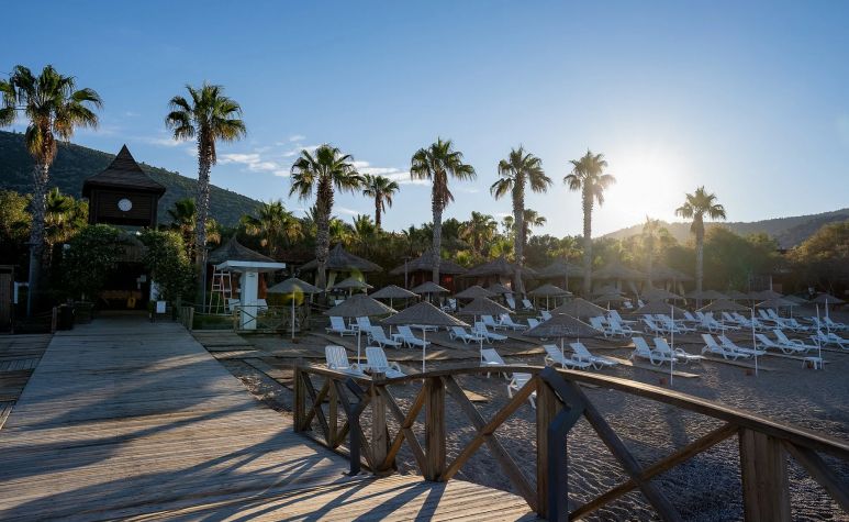 Собствен, пясъчно-чакълест плаж. Чадъри, шезлонги, матраци на плажа и при басейна - безплатно. Плажни кърпи - срещу депозит.