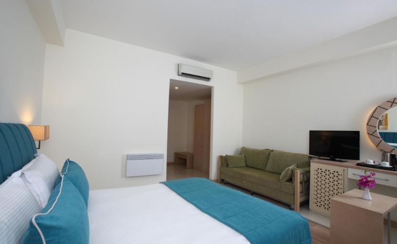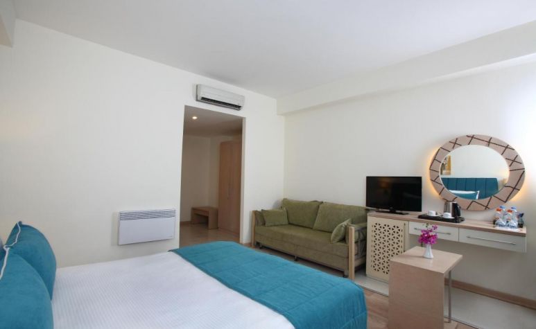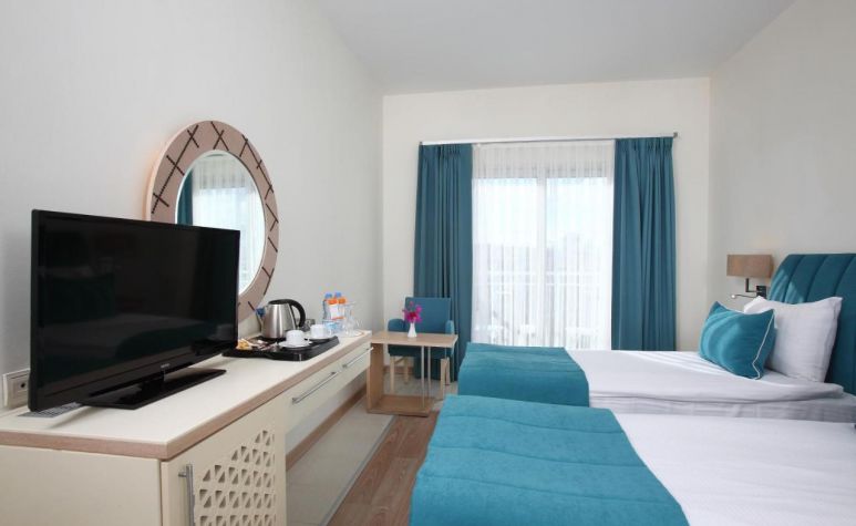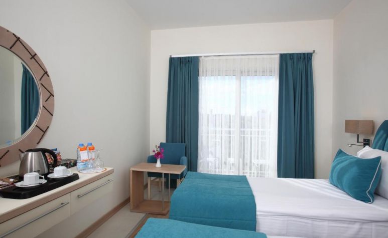 Хотелът разполага с общо 181 стаи, разположени в 3-етажни сгради. Standard room (18 m²), Family room (22 m²).