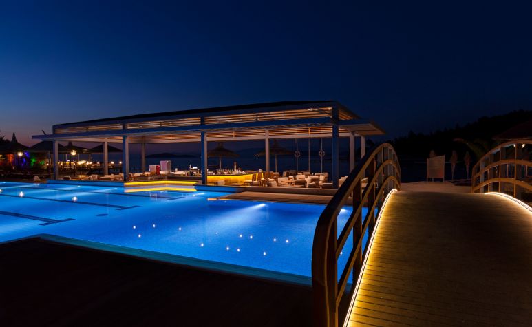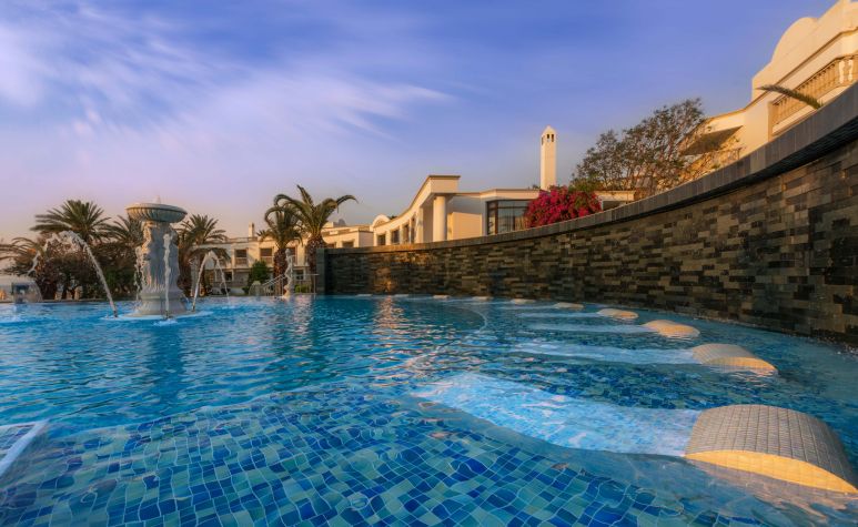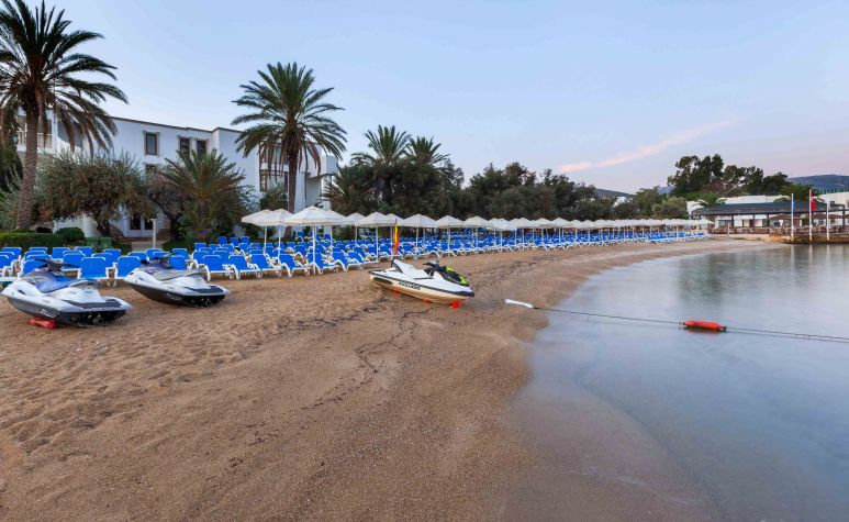 Хотелът се намира на 30 км от летище Милас, на 9 км от центъра на Бодрум, в района на Торба, на брега на морето. Последно реновиран през 2022/3 г. С обща площ от 70 000 m².