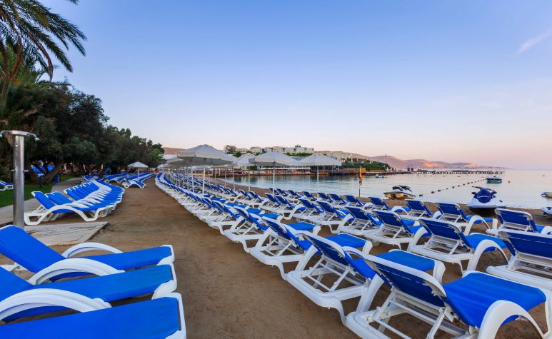 Собствен пясъчен плаж с дължина от 150 м и 150 м платформа - чадъри, шезлонги и кърпи на плажа и при басейна - безплатно.