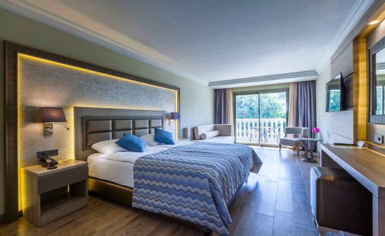 Хотелът се състои от 339 стаи от които: Standard Room Land View (35 m²), Standard Room Sea View (32 m²), Standard Sea View Corner room (35 m²), Deluxe Garden Room (30 m²), Superior Garden Room (35 m²), Junior Suite (45 m²), Senior Suite (55 m²) и стаи за инвалиди. Всички стаи са оборудвани с централен климатик, телевизор, телефон, баня с душ/вана, сешоар, мини бар, сейф, балкон или тераса, Wi-Fi. Почистване на стаите - всеки ден, смяна на спалното бельо - 3 пъти в седмицата.