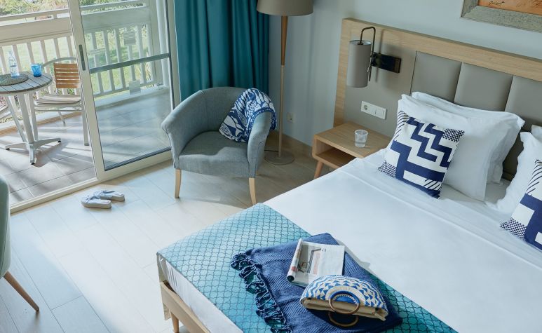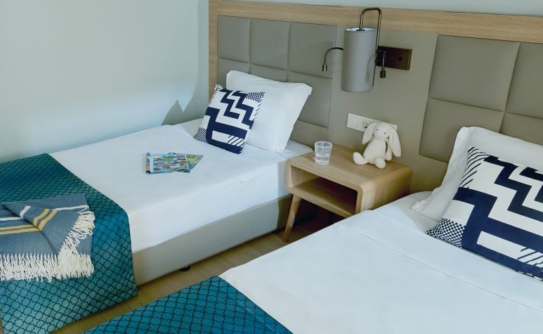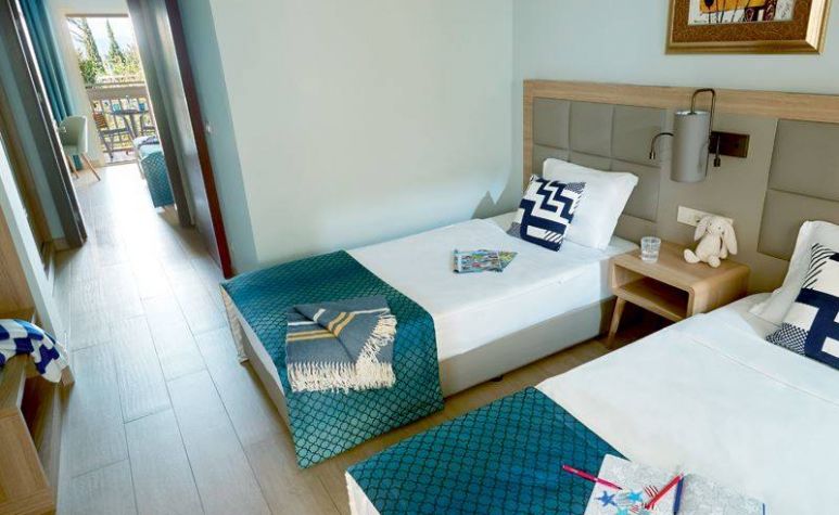 Хотелът разполага с общо 335 стаи, от които 83 Standard Room (25 м²), Family Room (1 спалня - 35 м²), Family Suites (2 спални, 1 баня - 37 м²), Superior Family Suites (3 спални, 2 бани - 55 м²), Villa (2 спални, 2 бани - 90 м²), стаи за хора с увреждания. Всички стаи са оборудвани с климатик, телевизор, телефон, баня с душ, сешоар, сет за чай/кафе, минибар (срещу заплащане), сейф (безплатен). Почистване на стаите и смяна на кърпите – всеки ден, смяна на спалното бельо – 2 пъти в седмицата.