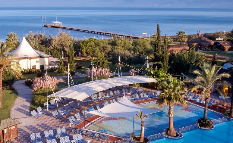 Намира се на 70 км от Измир, на 130 км от летище Милас, на 8 км от центъра на Кушадасъ, на брега на морето. Построен през 2006 г. върху обща площ от 90 000 м². Реновиран през 2019 г. Хотелът е удостоен със сертификат "Зелена звезда" за опазване на околната среда.