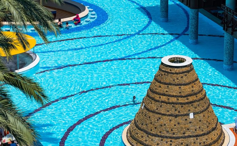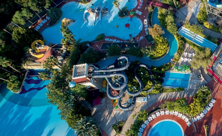 На гостите на хотела е осигурен неограничен безплатен достъп до Аквапарка, който разполага с 31 водни пързалки, от които няколко екстремни (Super combo,Screamer, Crazy Raft, Boomerango, Space Bowl и др.), басейн със 7 вида изкуствени вълни, 400 метра дълга Lazy River, Lily Pad - място за срещи на родители и техните деца, а за по-малките деца са налични: голяма детска зона с Treasure Island;  Pirate’s Ship с 6 пързалки и интерактивни играчки, комплекси от пързалки Submarine Octopus, Frogslide и Wreckship.