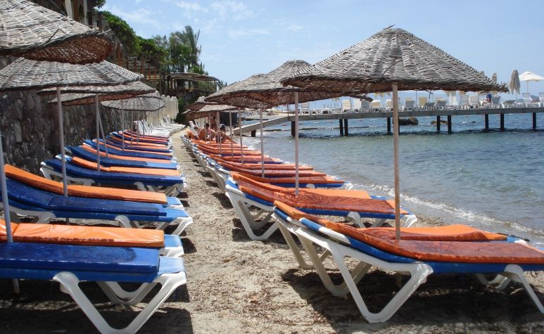 Собствен пясъчен плаж. Чадъри и шезлонги на плажа и при басейна - безплатно, плажни кърпи - срещу депозит.