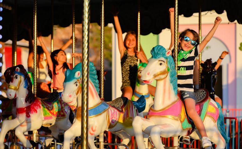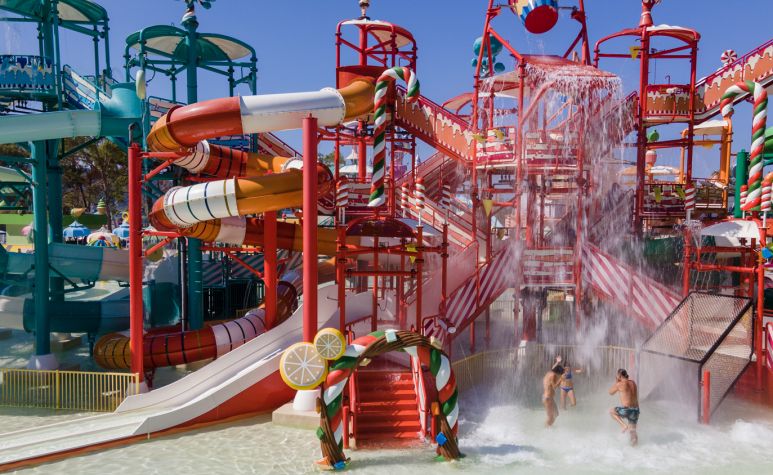 CANDYTOWN LUNA PARK е мястото за неверятно забавления по време на Вашия престой. Паркът представлява комплекс от различни забавления за всички възрасти. Малките гости могат да се забавляват в детското градче - миниатюра Portaventura Kids World (шопинг мол, пожарна, поликлиника, полиция, банка, театър, лего стая, фитнес и много други детски обществени сгради), с площ 5000 кв. м. Там могат да участват в различни групи за занимания и да получат сертификат. Разбира се, не трябва да пропускат и Лунапарка с 9 различни атракции включително виенско колело високо 17 метра, както и детска въртележка, картинг, лабиринт с лазер игри, детско влакче на ужасите и 8D кино. Има мини клуб за деца между 4 и 7 годишна възраст, който може да предложи на малките посетители детски фитнес, арт занимания, мини диско, игрална площадка, детска йога и безброй други забавления. За малко по-големите (на възраст между 8 и 12 години) в макси клуб се предлага търсене на съкровища, оригами, баскетбол, волейбол, водно поло, сумо игри, рали, футбол и още други. Тийнейджърите в хотела могат да посетят предвидения за тях клуб, в който играят тенис на маса, футбол, дартс, търсене на съкровища, игрална зала (playstation 5 и компютърни игри), бинго, баскетбол, кино, уроци и много други. Дино парк с 12 динозаври в реални размери. Най-новите атракциони са тематичния парк Candyland и виенското колело. Работно време в периода 01.05-15.10 от 20.00 до 23:00 (може да варират спрямо метеорологичните условия).