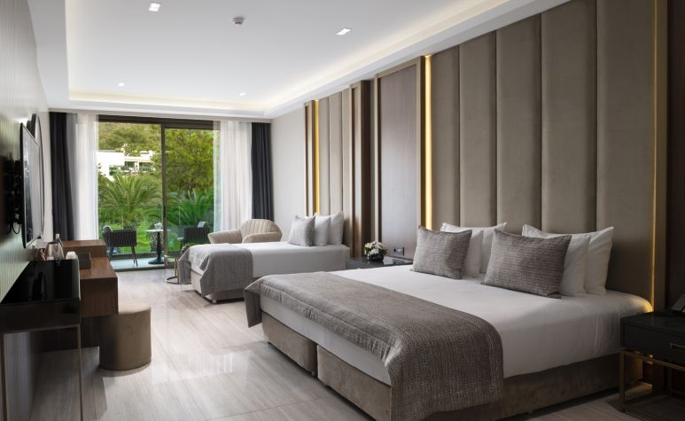 Хотелът разполага с общо 782 стаи и 52 частни вили. Хотелът се състои от 5-етажна основна сграда, в която са разположени Superior room land / sea view (50-55 m²), Corner Deluxe Room Land View - 75 m² (с просторно предверие и спалня, подходящи за семейства), Family Suit Land / Sea View - 75 m² (с две спални, разделени с врата и една баня). В 44 двуетажни сгради, всяка предлагаща лукс и различни удобства сред прекрасна градина са разположени стаите Garden Room Annex (32 m²), Superior Garden Room Annex (55 m²), Family Garden Room Annex - 75 m² (две отделни спални помещения с врата, една баня и балкон), Family Connection Room Annex - 90 m² (състои се от две спални и две бани, първата спалня е с двойно легло и балкон, а втората с две единични легла). В градината са разположени и частните вили.