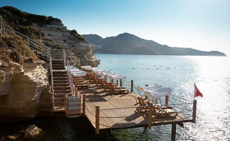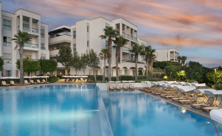 Хотелът е разположен на 65 км от летището и на 25 км от центъра на Бодрум, в района на Акярлар, в близост до Тургутрейс, на брега на морето. Разполага с обща площ 55,000 m².