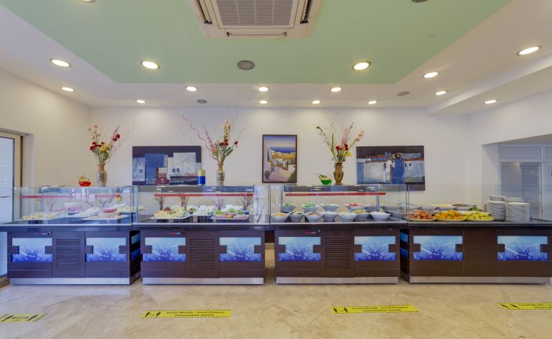 Основен ресторант, 1 а-ала карт ресторант (1 безплатно посещение при минимум 7 нощувки/ с предварителна резервация), 1 бар (при басейна), открит басейн, детски басейн, СПА център, фризьор, мини маркет.