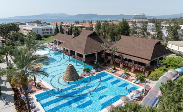 Намира се на 65 км от летище Измир, на 130 км от летище Милас, на 8 км от центъра на Кушадасъ, на брега на морето. Изграждането на комплекса започва през 2002 г. като в днешния си вид е завършен през 2006 г. реновиран 2022/2023. Разположен на обща площ от 85 000 м². Хотелът е удостоен със сертификат "Зелена звезда" за опазване на околната среда.