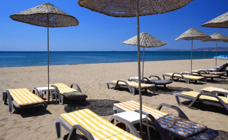 Собствен, пясъчен, удостоен със сертификат "Син флаг". Чадъри и шезлонги на плажа и басейна - безплатно. Плажни кърпи - срещу депозит.