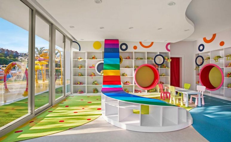 За децата: Детско меню изготвено от детски шеф готвач (диетични и храни без алергени за деца - с предварителна заявка), 3 открити детски басейна, аквапарк, лунапарк, детска площадка, мини клуб (4-12 г.), тийн клуб (13-16 г.), детски работилници, дневни и нощни активности, мини диско, детско кино, анимация.