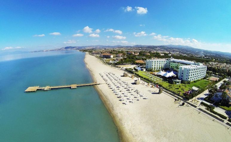 Хотелът се намира на 80 км от летище Измир, на 120 км. от летище Милас, 12 км. от центъра на Кушадасъ, във вилното селище Давутлар, на брега на морето. Построен е през 2010 г. с обща площ от 12 000 м². Реновиран през 2019 г.