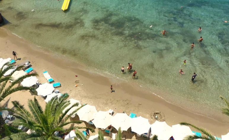 Собствен, пясъчен и платформа. Чадъри, шезлонги и плажни кърпи на плажа и при басейна – безплатно.