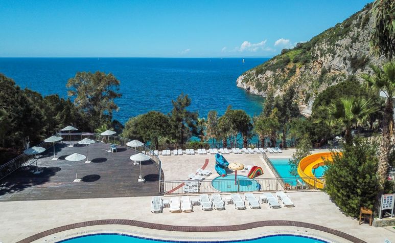 Хотелът се намира на 75 км от летище Измир, на 130 км от летище Милас, на 2 км от центъра на Кушадасъ. Разположен в уединен залив на брега на морето.