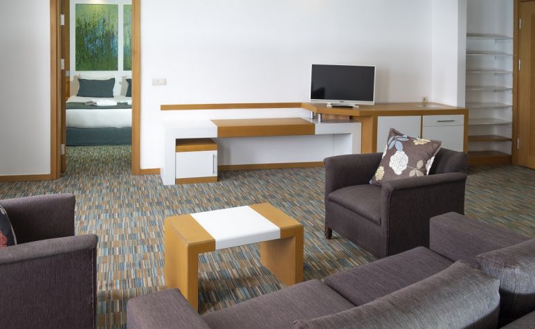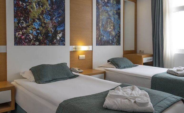 Хотелът разполага с 329 стаи, от които 62 стандартни стаи с изглед градина в основната сграда без балкон (25 -30 кв.м), 136 стандартни стаи с изглед море в основната сграда без балкон (25-30 кв.м), 64 клубни стандартни стаи в анекс сграда с  балкон (35 кв.м), 5 суита в основната сграда без балкон (55 кв.м). Всички стаи са оборудвани с климатик, телевизор, телефон, баня с душ, сешоар, минибар, сейф (безплатен). Почистване на стаята и смяна на кърпите - всеки ден, смяна на спалното бельо - 3 пъти в седмицата.