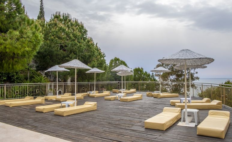 Собствен, платформа. Шезлонги и чадъри на плажа и при басейна - безплатно. Плажни кърпи - безплатно.