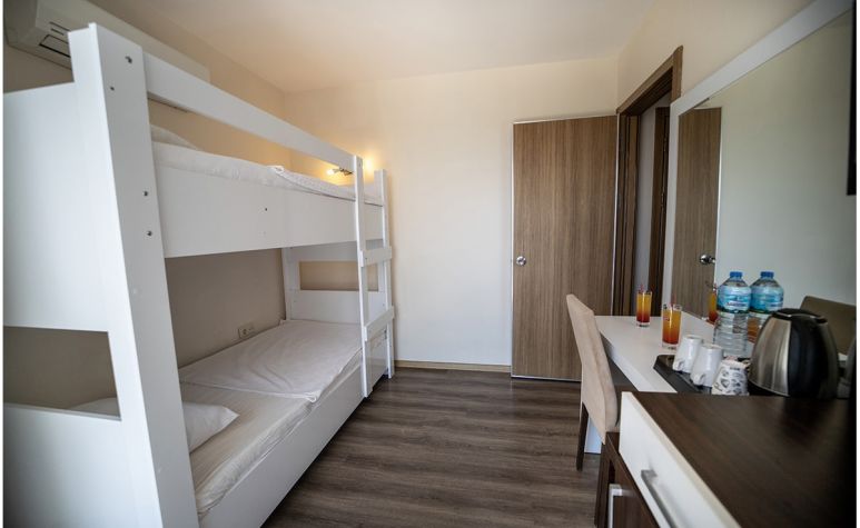 Хотелът разполага с общо 131 стаи, от които 116 Standard Room (24 м2) и 5 Junior Family Room (32 м2), 9 Family Room (45 м2). Всички стаи са оборудвани с климатик, телевизор, телефон, баня с душ, сешоар, сет за чай/кафе, минибар (безплатна мин. вода всеки ден), сейф (безплатен), балкон.