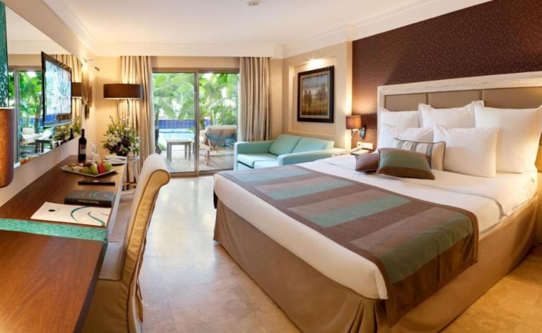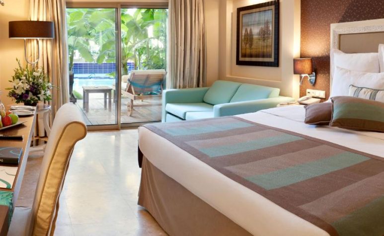 Хотелът разполага с  общо 268 стаи, разпределени в два 5-етажни корпуса:  88 Standard garden view (33 кв.м), 104 Standard sea view (33 кв.м), 36 Standard Pool Side (директен достъп до басейна, с индивидуална тераса с шезлонги - 33 кв.м), 20 Terrace Suite стаи (директен изглед към море, джакузи на терасата, безплатен рум сървис 24/7, комплимент при настаняване - 70 кв.м), 20 Family Suites (гледка градина, спалня и всекидневма с преградна врата, баня с душ и вана - 65 кв.м), 2 Handicapped (пригодени за хора с ограничена подвижност - 33 м2). Всички стаи са оборудвани с климатик, телевизор, телефон, баня с душ, сешоар, сет за чай/кафе, минибар (ежедневно зареждане с вода и безалкохолни напитки - безплатно), сейф (безплатно), балкон.
