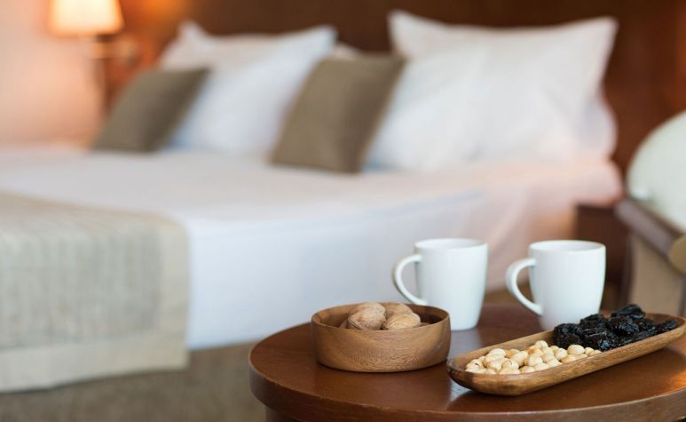 За младоженци: Плато с плодове, шампанско или вино, сервиране на закуска в стаята 1 път по време на престоя, приоритетна а-ла карт резервация, 15% отстъпка в СПА центъра.