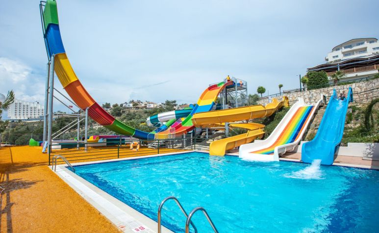 Основен ресторант, 2 бара, открит басейн, аквапарк,  СПА център, телевизионна зала, магазини, конферентна зала, паркинг.