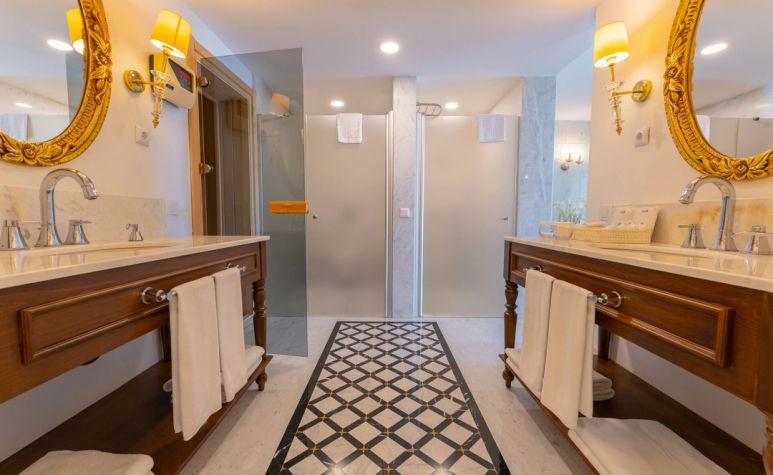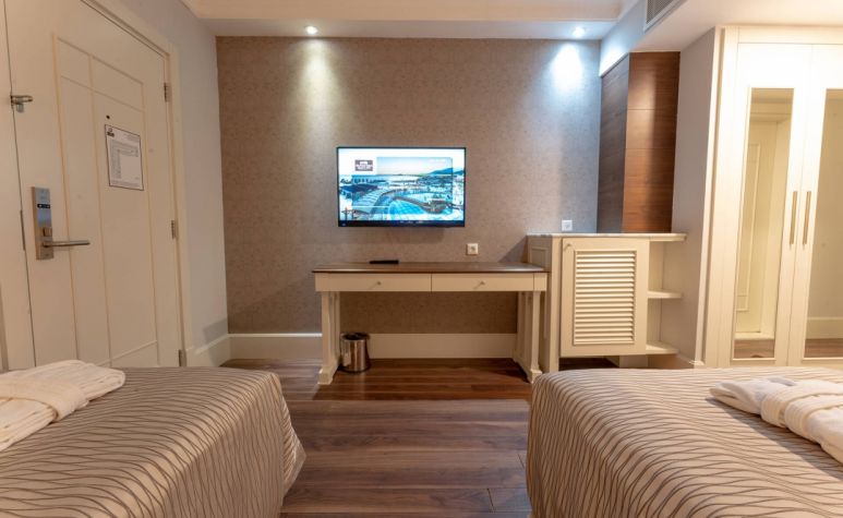 Хотелът разполага с 470 стаи, от които 406 Standard room (с изглед градина, частичен изглед море и изглед море - 29 m²), 50 Family suite (40 с изглед море, 2 спални, 1 баня - 36 m²: 10 с изглед градина, 2 спални, 1 баня - 42 m² ), 9 Royal deluxe suite (с изглед море, 1 спалня, 1 всекидневна, 2 бани - 69 m² ), 4 Laguna suite (с изглед море, 2 спални, 1 всекидневна, 2 бани  - 86 m²), 1 Presidental suite (с изглед море, 2 спални, 1 всекидневна, 2 бани, сауна, джакузи - 165m²) и 5 Handicapped (пригодени за хора с ограничена подвижност - 29 m²). Всички стаи са оборудвани с климатик, телевизор, телефон, баня с душ, сешоар, сет за чай/кафе, минибар (ежедневно зареждане с безалкохолни напитки, бира, вода и специално мляко Nesquik за семейства с деца - безплатно), сейф (безплатен), балкон, Wi-Fi интернет. Икономичните стаи са на приземен етаж без балкон. Почистване на стаите и смяна на кърпите - всеки ден, смяна на спалното бельо - 3 пъти в седмицата.
