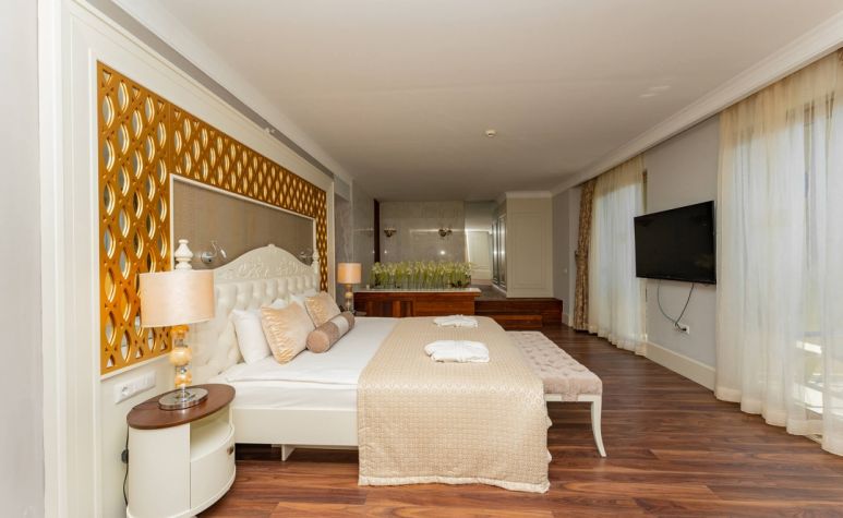 Основен ресторант Efes (за закуска и вечеря), ресторант Obed (обяд), 5 а-ла-карт ресторанта (италиански, мексикански, азиатски, турски и рибен - с предварителна резервация, 1 безплатно посещение на 1 от ресторантите при минимум 7 нощувки), ресторант Mevlana (пиде и айрян), снек ресторант Heroon (студени и топли ястия, десерт, плодове, салати, гьозлеме), снек бар Street Food (хамбургери, хот дог, сладкиши, паста и др), суши бар (с предварителна резервация, 1 безплатно посещение на 1 от ресторантите при минимум 7 нощувки), 9 бара, наргиле бар, сладкарница, открит басейн, закрит басейн, 7 водни пързалки, магазини, СПА център, дискотека, паркинг.
