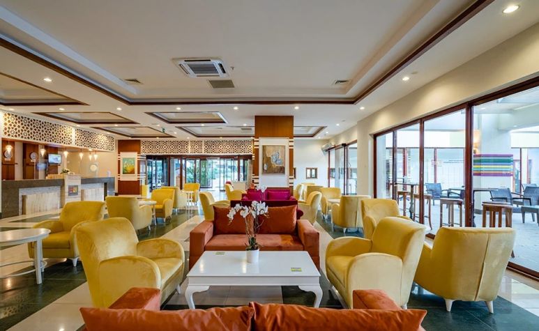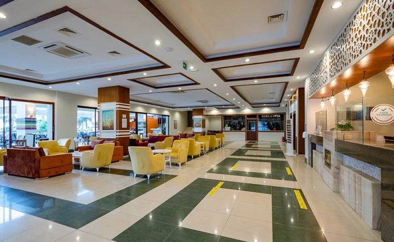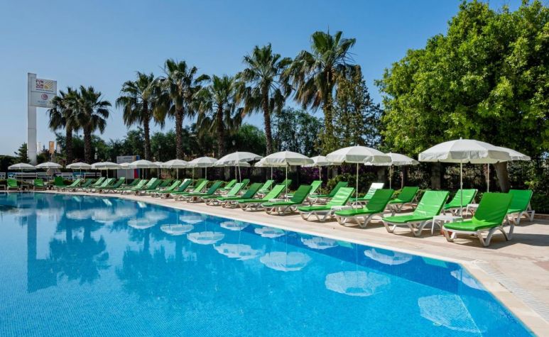 Основен ресторант, 1 а-ла-карт ресторант (Grill Restaurant – 1 безплатно посещение при минимум 7 нощувки, с предварителна резервазия), снек бар, гюзлеме корнър, тематични вечери, 7 бара, 2 открити и 1 закрит басейн, 2 водни пързалки, дискотека, СПА център, конферентна зала, Wi–Fi (в лоби). За децата: Детски открит басейн, мини клуб, детска площадка, детско столче в ресторанта, детегледачка (срещу заплащане). Безплатни услуги: Сауна, турска баня, парна баня, фитнес, тенис корт, тенис на маса, баскетбол, боча, плажен волейбол, водна гимнастика, мини футбол, дартс, лека анимация. Платени услуги: Масаж, химическо чистене, лекар, фотограф, магазини, осветление за тенис корт, водни спортове, рент-а-кар. Плаж: Собствен, на 70 м. от хотела (през път), пясъчно-чакълест. Чадъри и шезлонги на плажа и при басейна – безплатно. Плажни кърпи – срещу депозит.