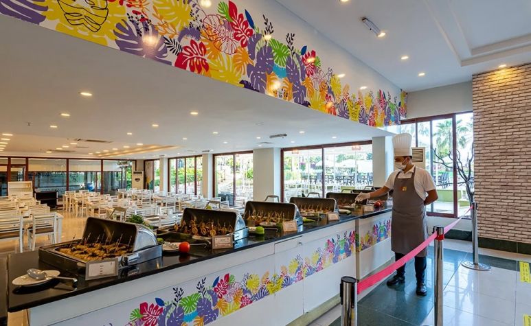 All Inclusive – закуска, обяд и вечеря на шведска маса, междинни хранения, местни алкохолни и безалкохолни напитки – без лимит (съгласно концепцията на хотела).