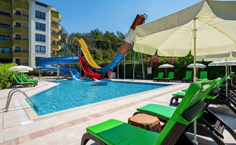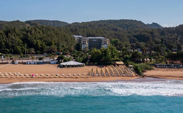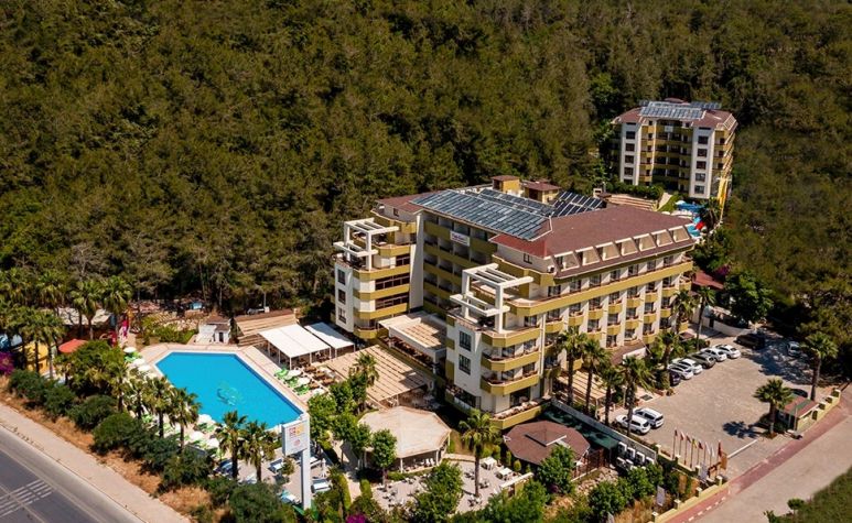 Намира се на 100 км. от летище Анталия, на 90 км. от центъра на Анталия, на 25 км. от центъра на Алания, на 3 км. от селището Авсалар, на 70 м. от брега на морето. Построен през 2005 г. с обща площ 11.000 м2, реновиран през 2019 г.