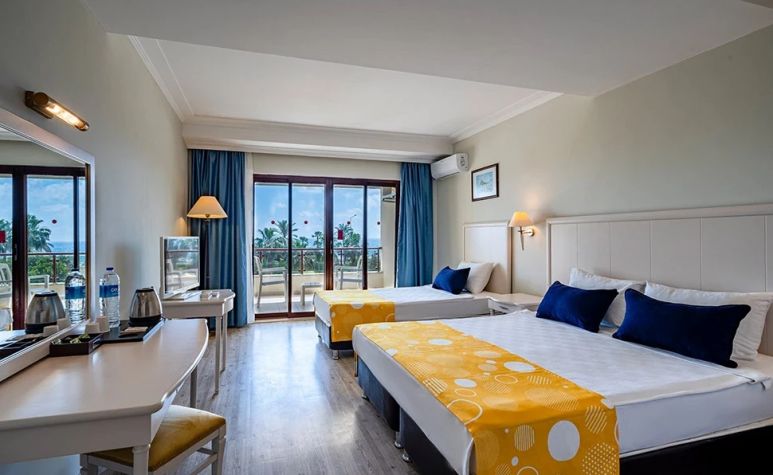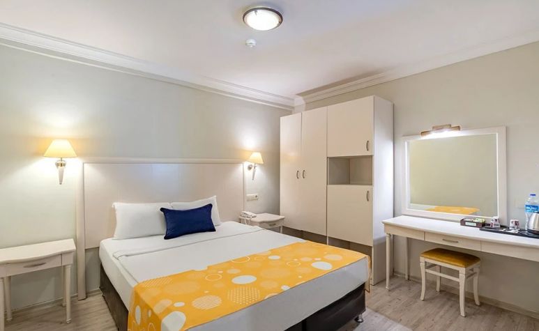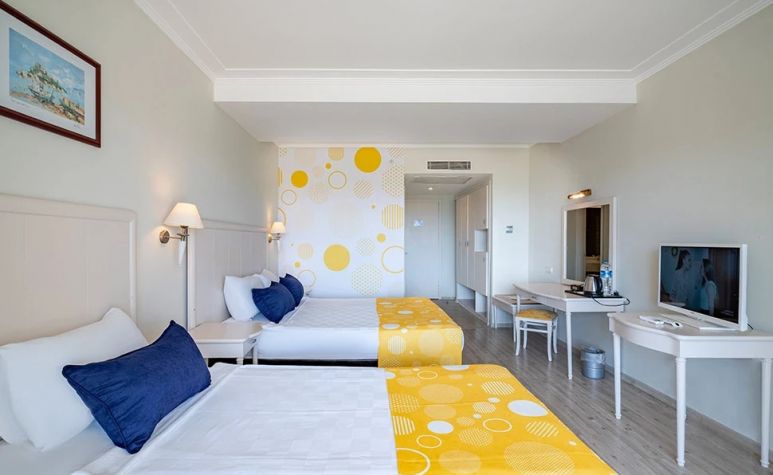 Хотелът разполага с общо 234 стаи, разположени в една 6-етажна основна сграда Main Building, от които 151 стандартни стаи Standard room land view (изглед суша - 30 м2), 40 стандартни стаи Standard room sea view (изглед море - 30 м2), 10 стандартни стаи Bunkbed room (спалня + двуетажно легло - 30 м2), 31 фамилни стаи Family room (2 спални, 1 бяна– 35 м2), 2 стаи за инвалиди. Всички стаи са оборудвани с климатик, телефон, телевизор, баня с душ/вана, минибар (вода и безалкохолни напитки – безплатно, само при пристигане), сет за кафе/чай, сейф (безплатен). Почистване на стаите - всеки ден, смяна на кърпите – при поискване, смяна на спалното бельо – 2 пъти седмично.