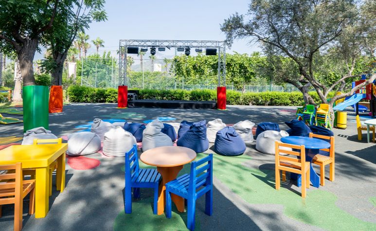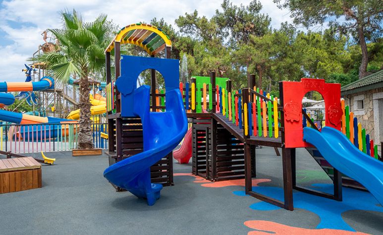 Основен ресторант, 3 а- ла- карт ресторанта/италиански, турски и рибен/, 4 бара, дискотека, открит и закрит басейн, СПА център, хамам, сауна, фитнес, масажи, 3 водни пързалки, магазини, паркинг. За децата: Детско меню, детски басейн, водни пързалки, детска площадка, мини дискотека, бебешко креватче, бебешки столчета, бебефон и други бебешки приспособления/със предварителна заявка - безплатно/. Безплатни услуги: Сауна, турска баня, фитнес, аеробика, тенис корт, наем на ракети и топки за тенис, волейбол, кино, немоторни водни спортове, кану, водно колело, анимация, интернет. Платени услуги: СПА център, масажи, фризьор, магазини, билярд, боулинг, моторни водни спортове.