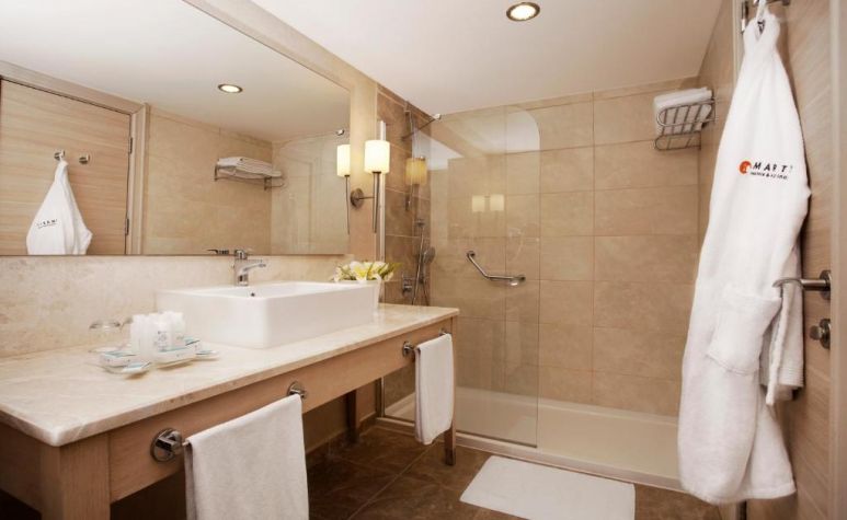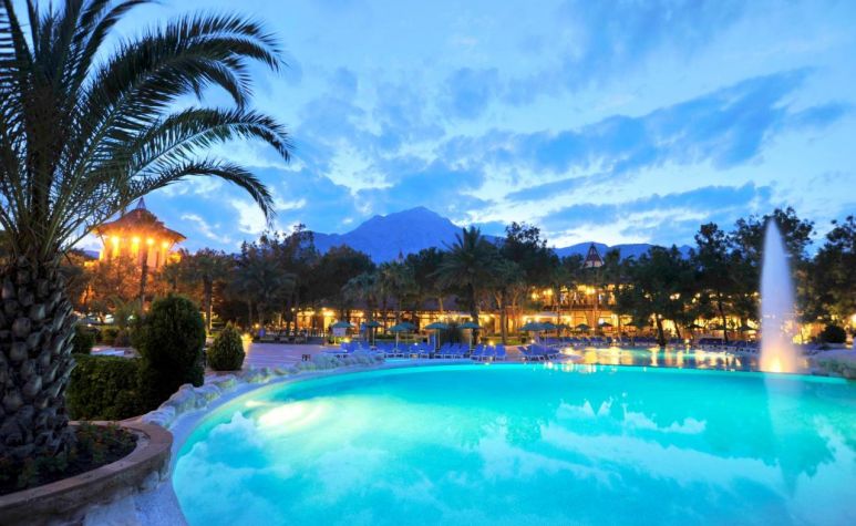 Основен ресторант, 4 а-ла-карт ресторанта, 6 бара, 4 конферентни зали, 1 закрит и 1 открит басейн, водни пързалки, детска площадка. За децата: детски бюфет, детско меню, детски басейн, детска площадка, мини-клуб (4-12 години), компютърни уроци (5-14 години, безплатно), мини-зоопарк, детска количка (в ограничени количества – с депозит), детегледачка (платено) Безплатни услуги - финтес център, сауна, турска баня, тенис кортове, плажен волейбол, баскетбол, дартс, анимационни програми, безжичен интернет. Платени услуги - масаж, уроци по тенис, водни спортове, лекар, пералня, фризьор, уроци по тенис, водни спортове.