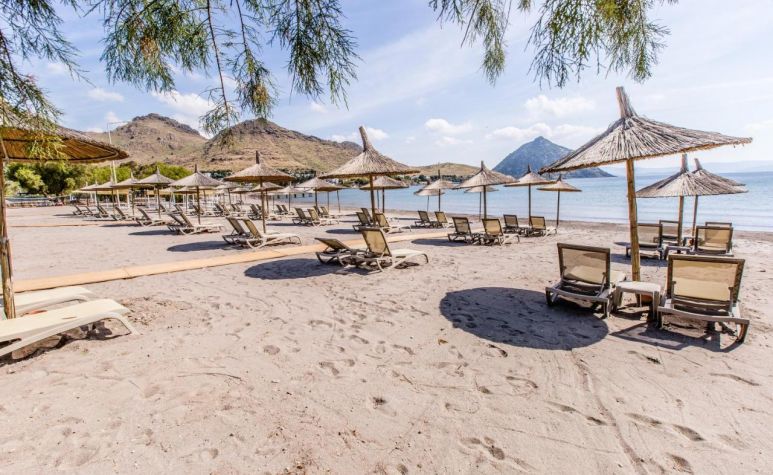 Собствен пясъчен плаж. Чадъри и шезлонги на плажа и при басейна - безплатно. Кабани на плажа - срещу допълнително заплащане.