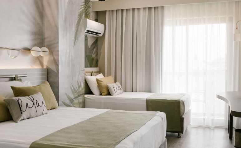 Хотелът разполага със 120 стаи. Всички са оборудвани с индивидуален климатик, LCD телевизор, телефон, баня с душ, сешоар, сейф (платен) и минибар (вода и безалкохолни напитки, безплатно), балкон, под - ламинат, WI-FI (платено). Почистване на стаите - ежедневно, смяна на спално бельо - 3 пъти седмично.