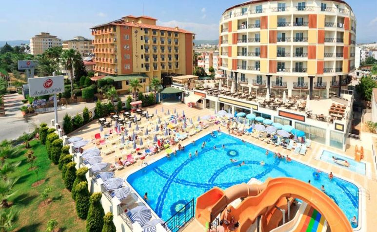 Намира се на 95 км от летище Анталия, на 110 км от центъра на Анталия, на 26 км от центъра на Алания, на 450 м от брега на морето. Построен 1999 г., на обща площ от 5250 м2. Реновиран 2015 г.