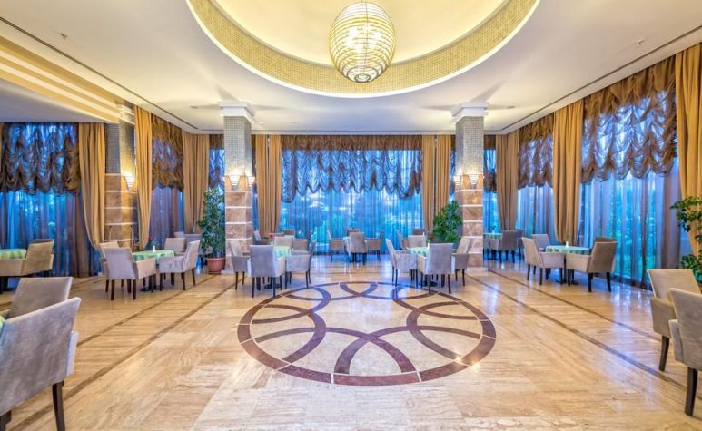 Основен ресторант, 2 ресторанта A'la Carte (турски и рибен - 1 посещение за 7 дни, безплатно на един от ресторантите), 6 бара, дискотека, 2 открити басейна, 2 пързалки, вътрешен басейн, Спа център, магазини, фризьорски салон, лекар, пране, 6 конферентни зали.