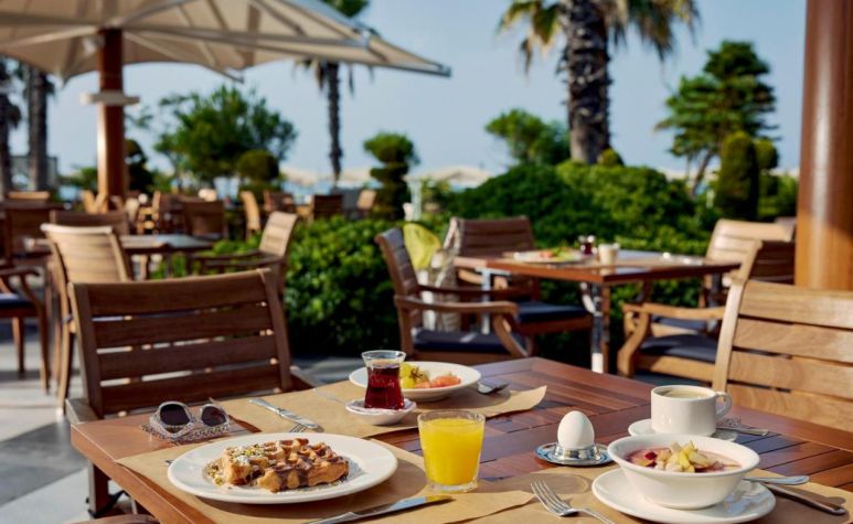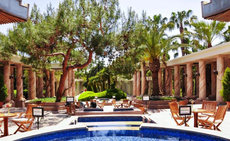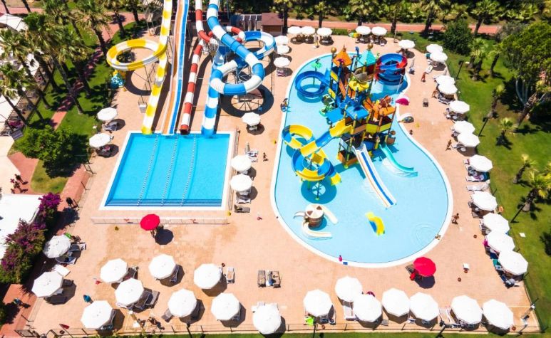 Основен ресторант, 4 а - ла - карт ресторанта (турски, италиански, рибен, китайски - с предварителна резервация), 8 бара, 3 открити басейна (активити, релакс и басейн на плажа), дискотека, водни пързалки, СПА център, магазини, паркинг, Wi-Fi (безплатен). За децата: Два открити басейна, детска площадка, мини клуб (4-12г.), джуниър клуб (13-16г.), батут за скачане, детско меню, детска количка (платено), музикални игри, детегледачка (платено). Безплатни услуги: Сауна, турска баня, тенис на маса, 3 тенис корта, фитнес, дартс, боча, билярд, скуош, водна гимнастика, аеробика, плажен волейбол, мини футбол, стрелба с лък, тематични вечери, анимация. Платени услуги: Масаж, пилинг, уроци по тенис, уроци по скуош, осветление за тенис корт, катамаран, химическо чистене, лекар, детегледачка, водни спортове, рент - а кар.