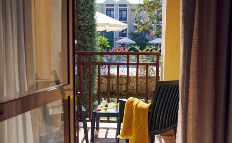 Хотелът разполага с общо 594 стаи, разположени в 20 дву и три-етажни къщички, от които 370 стандартни стаи Standard room (24 м2), 126 стандартни стаи с двуетажно легло Standard Room with Bunk Bed (24 м2), 92 фамилни стаи Family room (2 спални, 1 баня - 46 м2). Всички стаи са оборудвани с климатик, телевизор, телефон, баня с душ/вана, сешоар, чехли, минибар (вода, бира, безалкохолни напитки - безплатно), сейф (безплатен). Почистване на стаите - всеки ден, смяна на спално бельо и кърпи – 3 пъти в седмицата.