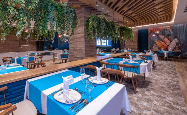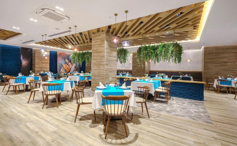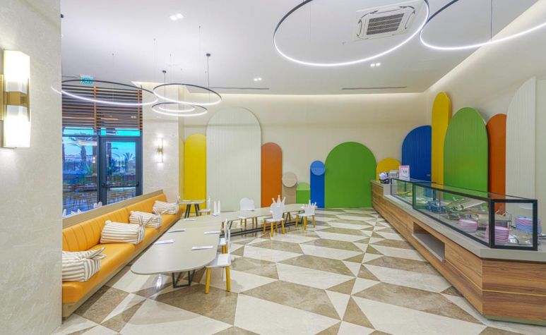 Основен ресторант, 2 а-ла-карт ресторанта (турски, средиземноморски - безплатни с предварителна резервация), 6 бара - Лоби бар, Бийч бар, Пул бар, Мока Бар, Аква бар, Диско бар, открит басейн, детски басейн - 20 m², 35cm дълбочина, SPA център, турска баня, сауна - безплатно,фитнес, анимационна програма, безжичен интернет, конферентна зала,паркинг.