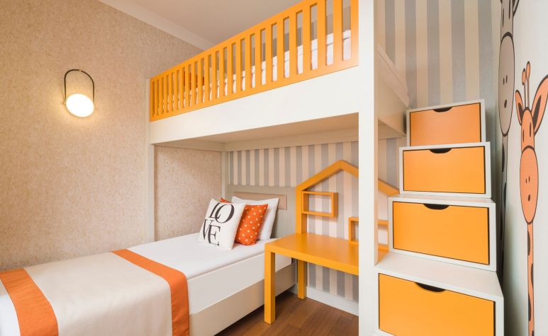 Стаи Main Building: 212 Main Building Standard Room (30 м2), 83 Main Building Family Room (2 спални, разделени с плъзгаща врата – 37 м2), 126 Comfort Family Room (2 отделни спални – 27-34 м2).