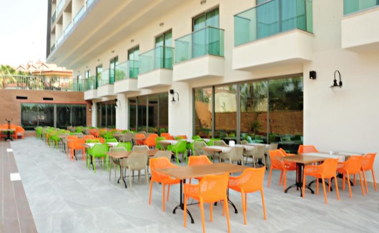 Основен ресторант, барове, открит и закрит басейн, 2 водни пързалки, СПА център, магазини, дискотека, WI-FI(в лоби). За децата: Детски басейн, мини клуб(4-12), детска площадк, мини диско. Безплатни услуги: Сауна, турска баня , парна баня, фитнес, тенис на маса, дартс, билярд, плажен волейбол, аеробика, водна гимнастика, анимация, WI-FI. Платени услуги: Масаж, пилинг, фризьор, химическо чистене, лекар, водни спортове, детегледачка , рент-а кар.