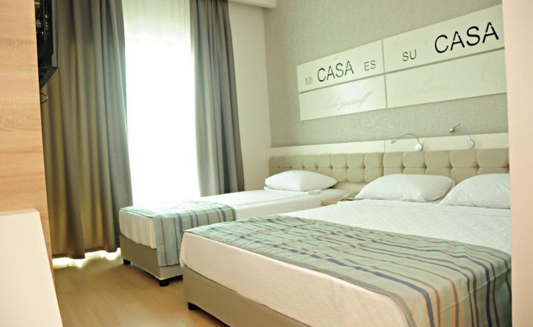 Хотелът разполага с общо 178 стаи, от които Standard rooms (23m2), Family room ( 43м2). Всички стаи са оборудвани с климатик, телевизор, телефон, баня с душ , сешоар, сет за кафе/чай, минибар (вода и безалкохолни напитки – безплатно), сейф (безплатен). Почистване на стаите и смяна на кърпите- всеки ден, смяна на спално бельо – 2 пъти в седмицата.